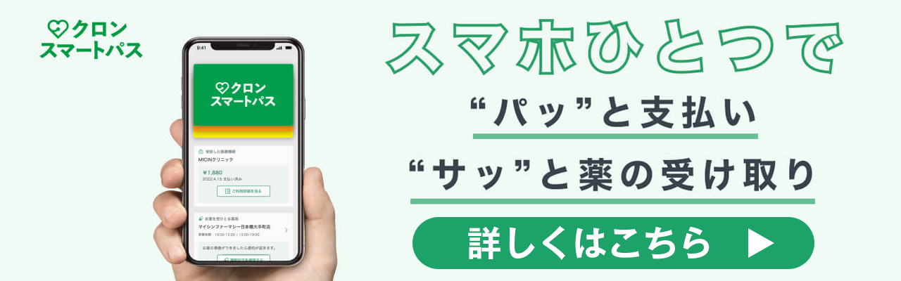 当クリニックでは、患者様の通院のご負担軽減や感染対策の観点から待ち時間削減のため「クロンスマートパス」を導入しております。
