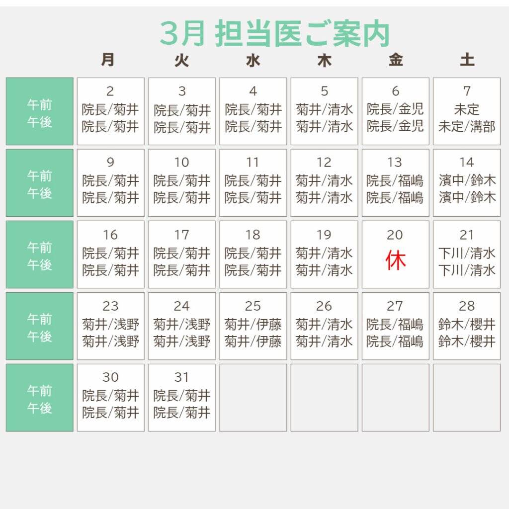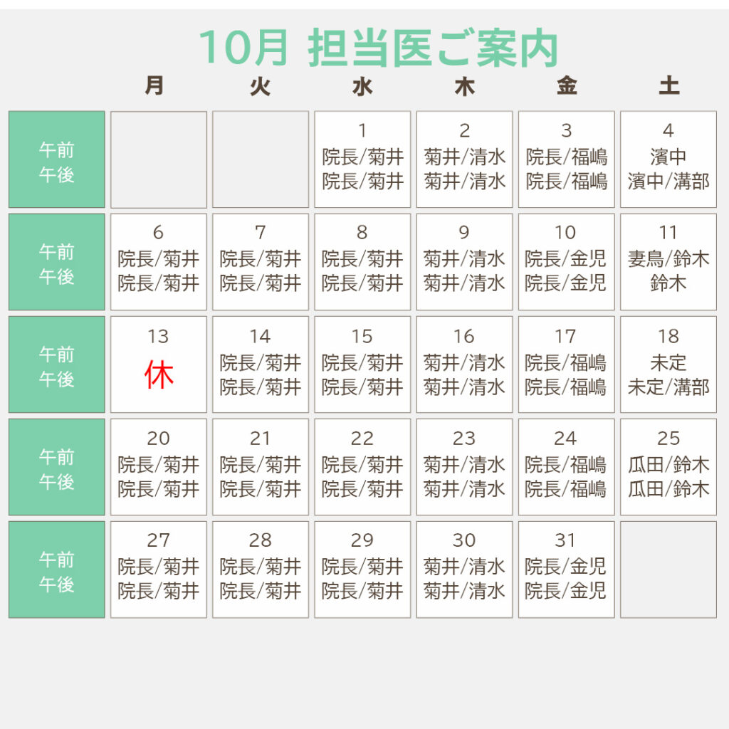 担当医は都合により変更になる場合もございますので、ご了承ください。